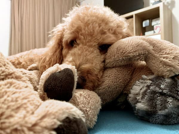 Zo ben ik dol op mijn Labradoodle ‘knuffie’…. Nu denken jullie misschien ‘knuffie’, ja… dat lezen jullie goed.. zo noemt mijn baasje al mijn knuffeltjes. Knuffies! Klinkt gezellig hè!
