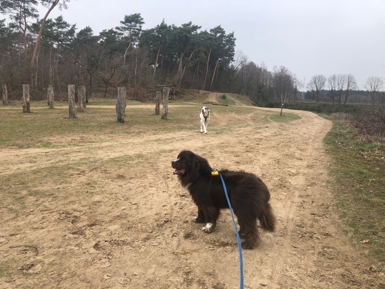 De Meinweg is voor ons een dikke 40 minuten rijden, maar nu we niet naar België mogen (wandelen valt niet onder noodzakelijk reizen) is het bij uitstek onze favoriete wandelplek. Er is een stukje losloop gebied waar Fender zich met zijn vriendjes kan uitleven maar grotendeels is er aanlijnplicht. Het is een verademing om er met Bumper te wandelen gezien de stukken waar deze plicht geldt de meeste honden ook echt aangelijnd lopen. Ik ben dan ook op bijna elk bezoek wel een boswachter tegen gekomen die hier op controleert. Maar ook begeleid deze fietsers naar de fietsroutes evenals ruiters naar ruiterpaden. Dit zorgt er voor dat er rust in het gebied is en dat het voor een natuurgebied eigenlijk heel georganiseerd is!